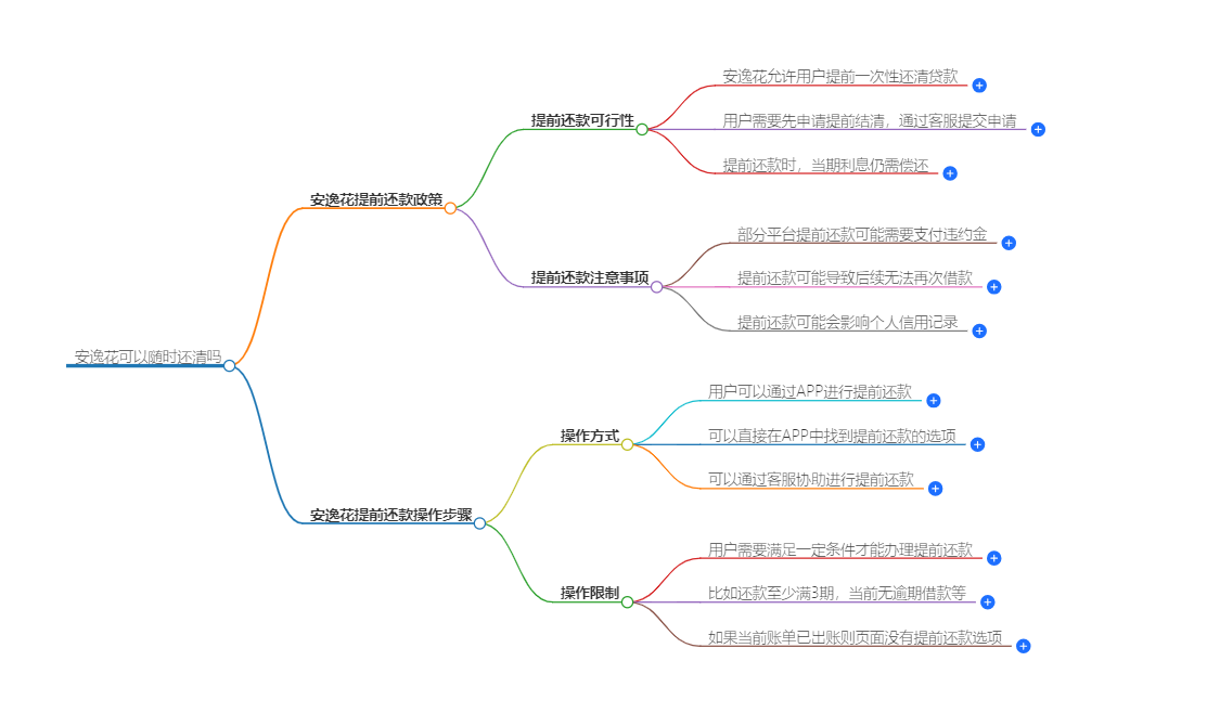 一天,小明突然想到,安逸花可以随时还清吗?他赶紧上网查询相关信息,发现安逸花是可以提前还款的,但是需要满足一些条件。比如,还款至少满 3 期、当前无逾期借款、当期账单未出账、办理当天无处理中的还款、未领取按期还款优惠券等福利。